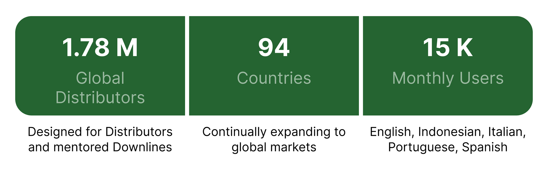 Volume House allows Distributors to view data sets comparing months, new customers, volume points, etc. Opportunities gives visibility into downline business activity and performance.