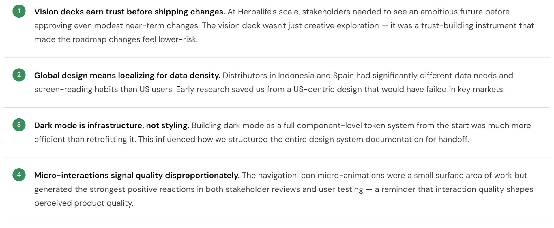 Redesigning a mission-critical distributor management app for 1.78M global users across 94 countries — while establishing a new design system and future vision.