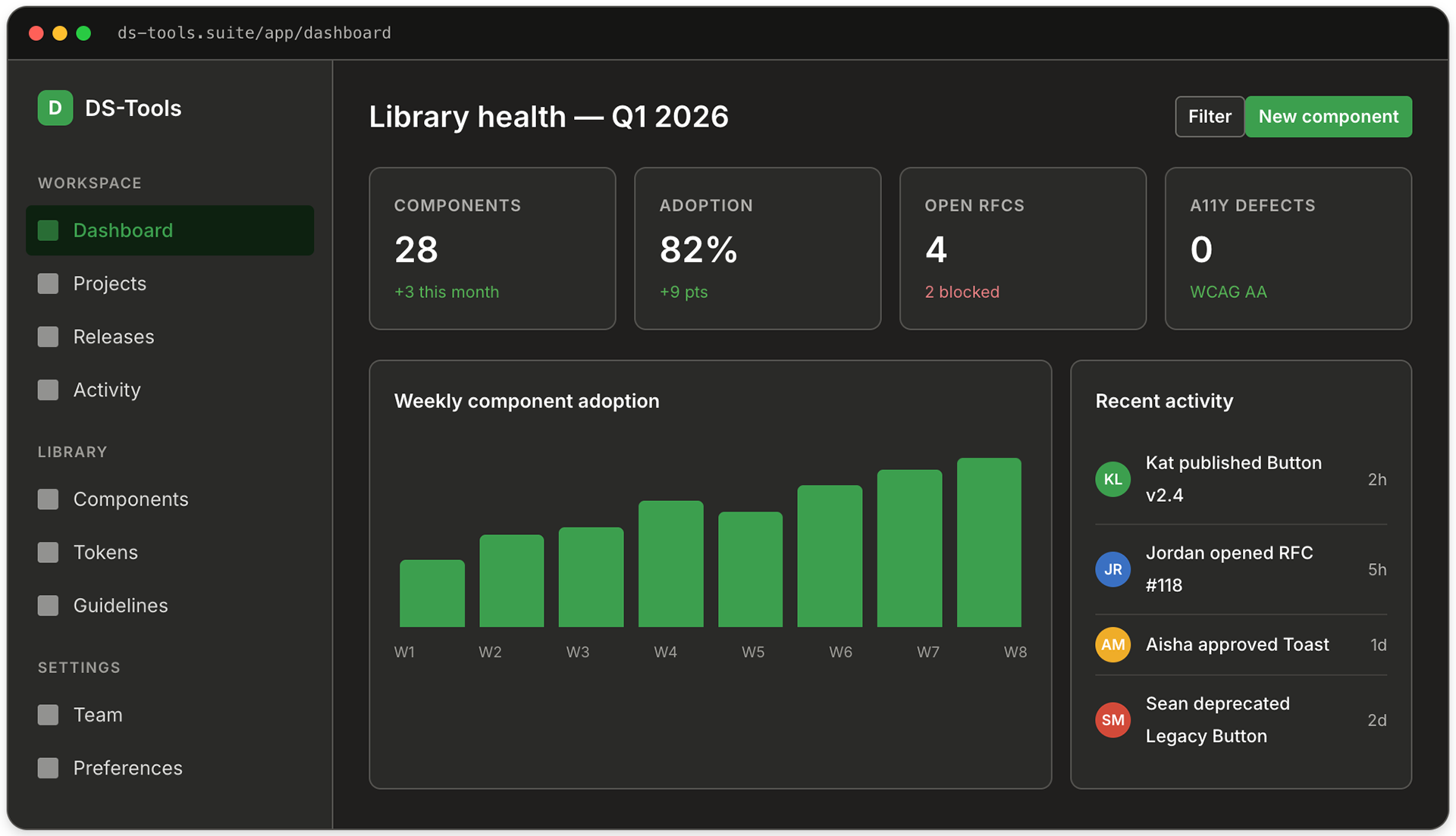 DS-Tools has a roadmap, a changelog, a release cadence, office hours, and a Slack channel where consumers can file issues. Treating it like an internal product rather than a folder of assets is the thing that kept it alive past the initial enthusiasm.