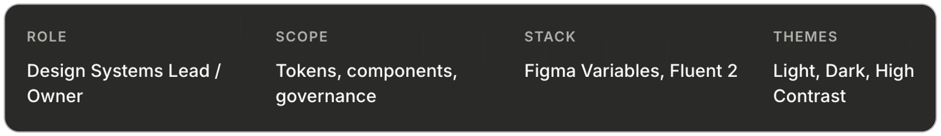 We also uncovered inherited cross-brand tokens from the Fluent base that had quietly leaked into production, prompting me to implement a Figma linter and formalize validation within the design review process.