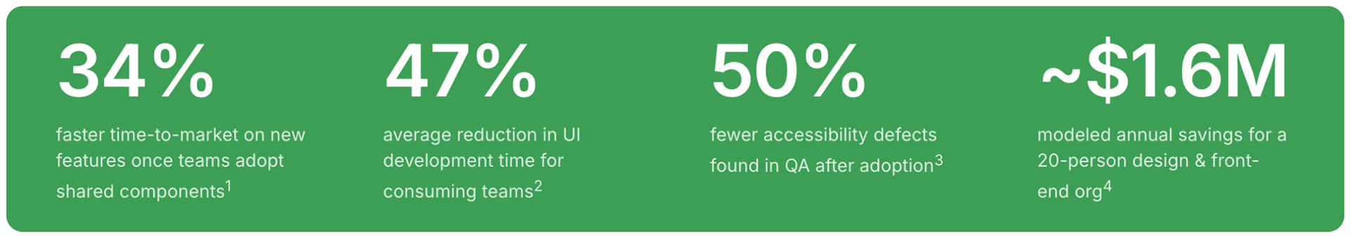 2 Sparkbox Design Systems Survey, 2022 — median reported dev time savings on component work.