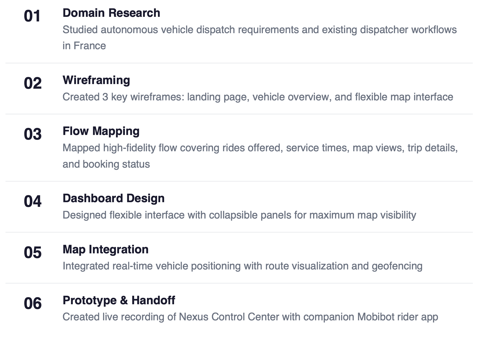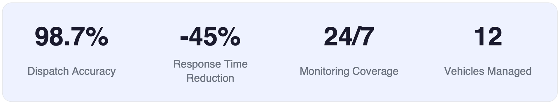 Nexus improved dispatch accuracy to 98.7% and reduced average response time by 45%. The flexible panel system became a reference design for autonomous vehicle dispatch interfaces, demonstrating that complex real-time data can be presented without overwhelming the operator.