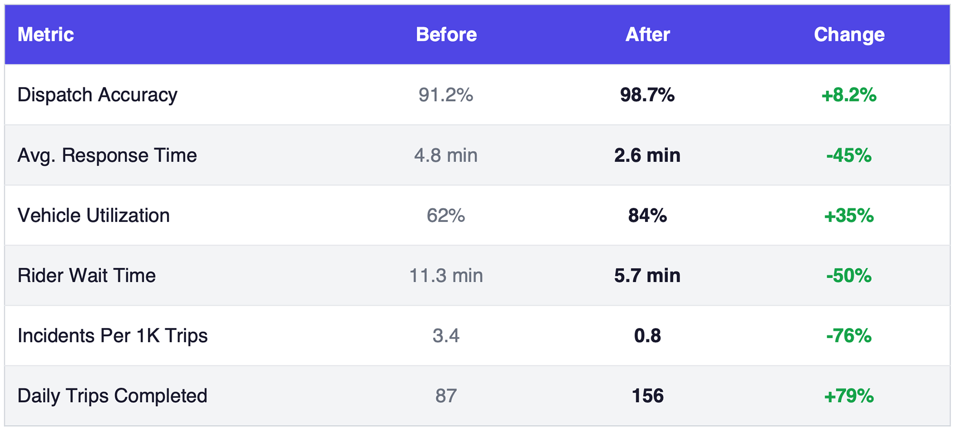 "The Nexus dashboard gave us confidence to scale our autonomous fleet. Dispatchers could finally see everything they needed without switching between five different screens."